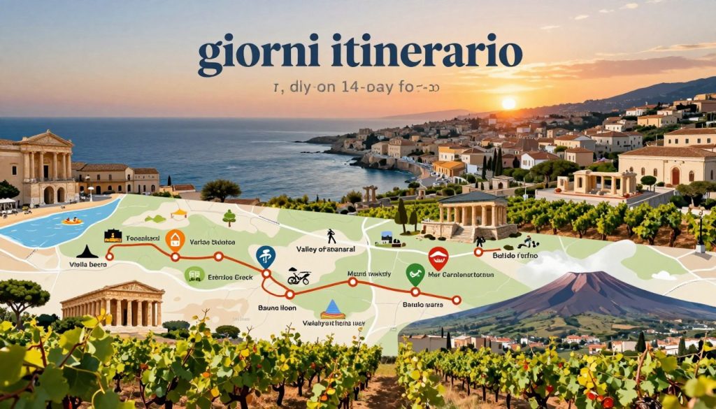 In 14 giorni è possibile realizzare un anello completo: Palermo, Cefalù, Eolie, Taormina, Catania, Siracusa, Agrigento, Marsala, Favignana, Zingaro, Segesta e Monreale. Pianifica pernottamenti strategici ogni 2-3 notti.